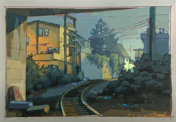 Various studies + sketches of sizes from 4" to 18". All painted works are done in gouache. Some were created plein air, while others were made in the studio from photographs.
